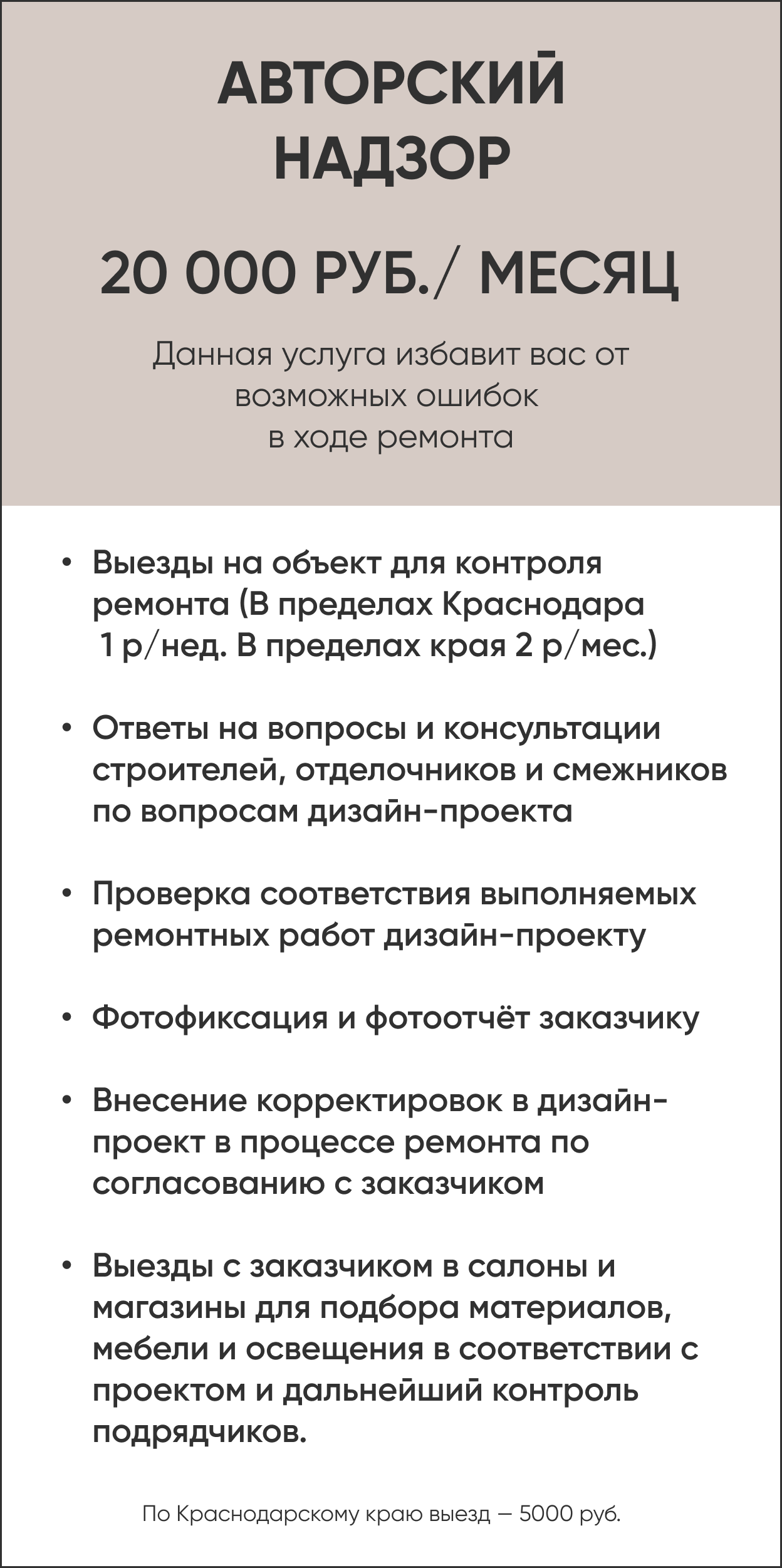 Я лично выезжаю на объект и контролирую авторский надзор на всех этапах работы